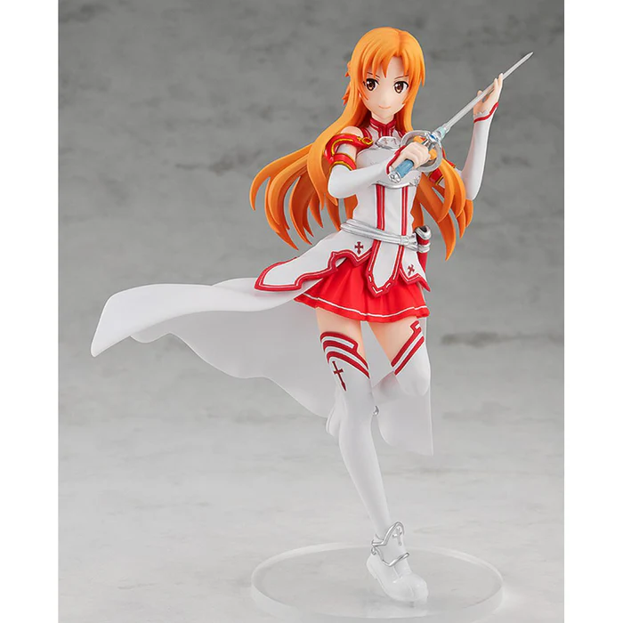 La línea POP UP PARADE de Good Smile Company presenta a Asuna Yuuki, la heroína de Sword Art Online, en una pose dinámica con su icónica espada Lambent Light. Su atuendo de caballera del gremio Knights of the Blood ha sido recreado con gran detalle, destacando los pliegues de su capa, el rojo vibrante de su uniforme y su elegante cabellera en movimiento.